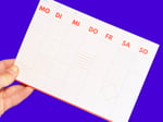 Der Wochenplaner im praktischen DIN A5-Format, gehalten in kräftigem Rot und leuchtendem Blau aus der HEY RUZI x TSCHAU TSCHÜSSI Papeterie-Kollektion bietet Platz zum Pläne schmieden und kann selbst datiert werden. Geht also immer.